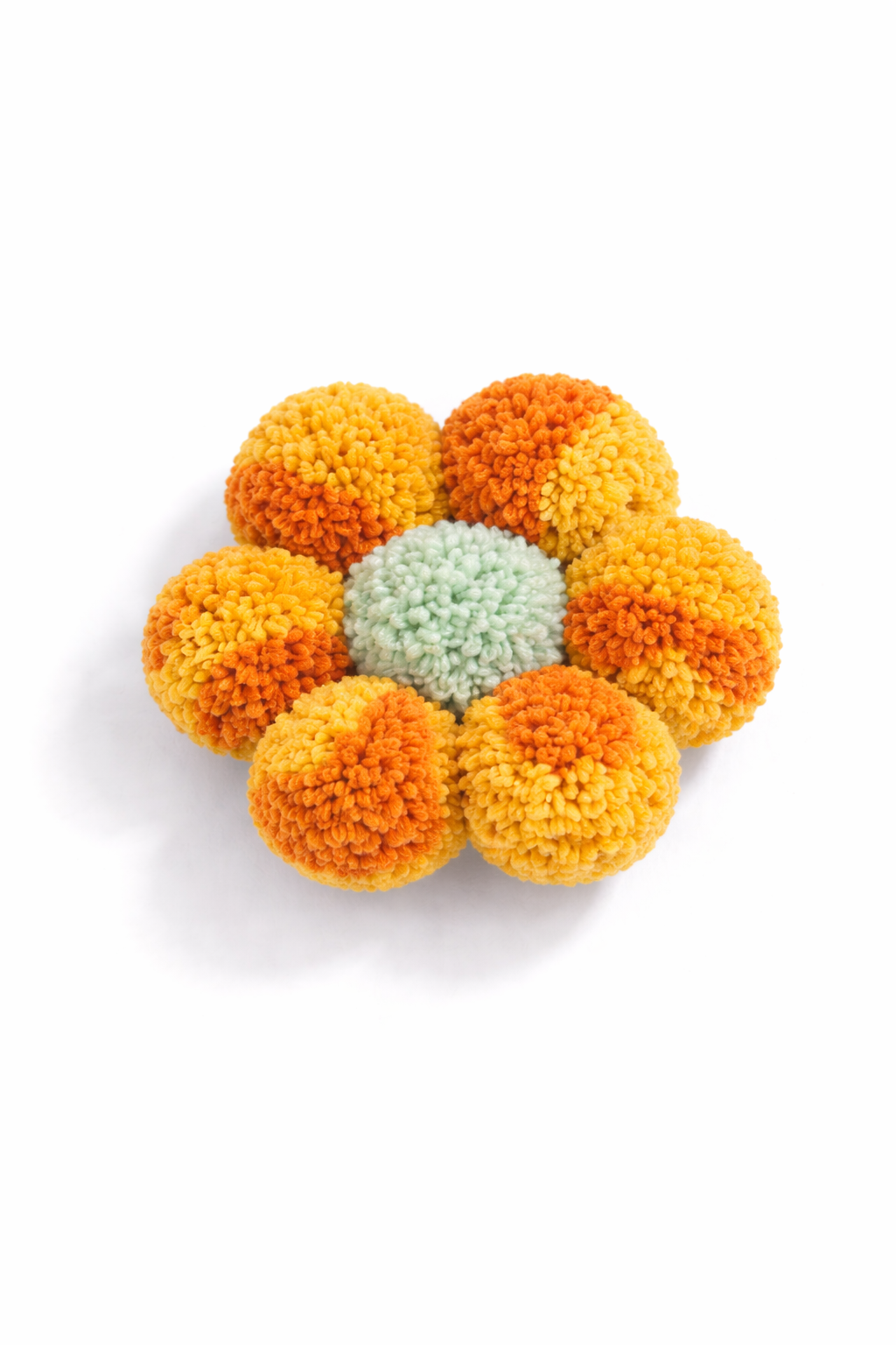 Deze pluche pomponbloem heeft een volle, zachte structuur en een speels bloemvormig ontwerp. Het oppervlak voelt comfortabel aan en geeft het product een stevige maar prettige grip, waardoor het uitnodigt om vast te houden, te rollen of mee te spelen.